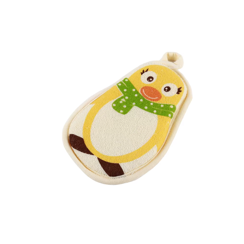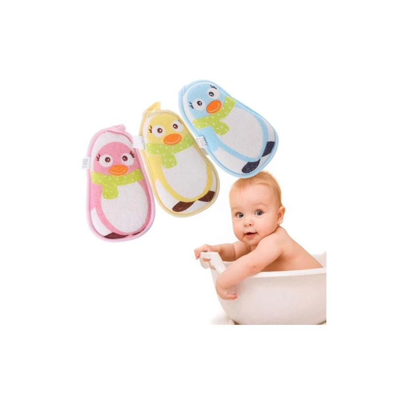 ليفة استحمام بتصميم البطريق اللطيف مع ألوان جذابة تجعل تجربة الاستحمام ممتعة ومحببة للصغار.