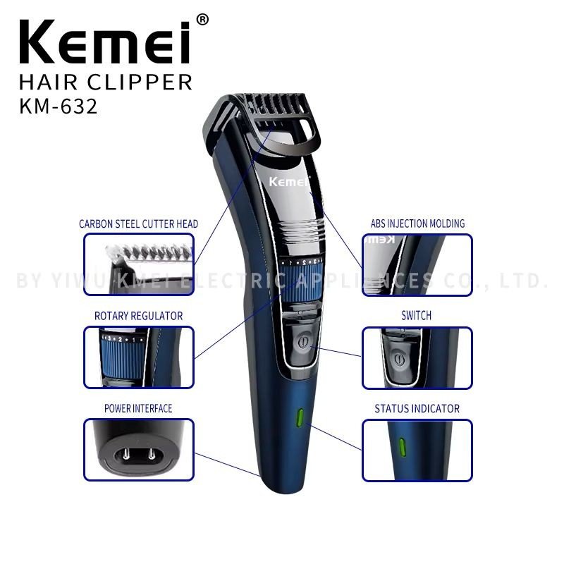 ماكينة حلاقة كهربائية Kemei احترافية للشعر واللحية للرجال ذات رأس واحد – مزودة بعدّاد للتحكم بمستوى ارتفاع الرأس لحلاقة مثالية دائما