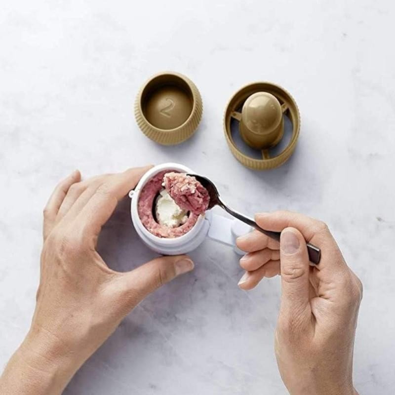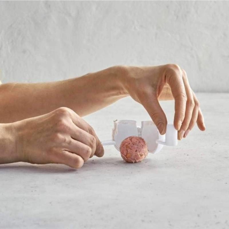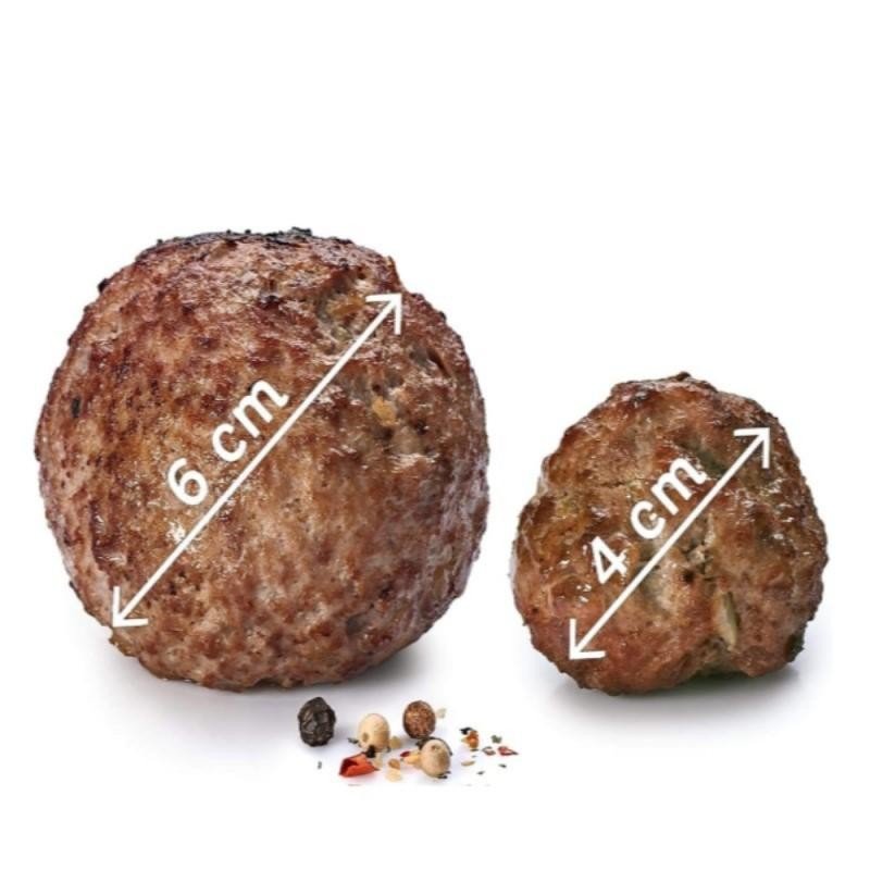 يقوم بتدوير كرات اللحم ويقطعها بالتساوي للتأكد من طهيها جميعًا بنفس المعدل.