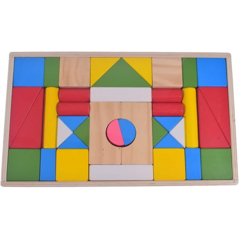 مجموعة مكعبات خشبية ملوّنة بتصميم كبير الحجم تتيح للأطفال بناء الأشكال والتصاميم بحرية تامة. تساعد على تنمية الخيال والإبداع، وتعزيز المهارات الحركية الدقيقة والتنسيق بين العين واليد. تحتوي على أشكال هندسية متعددة مثل المربعات والمثلثات والأسطوانات لتشجيع التعلم من خلال اللعب. مصنوعة من خشب طبيعي آمن ومطليّ بألوان غير سامة، مناسبة للأطفال من عمر 3 سنوات فما فوق.