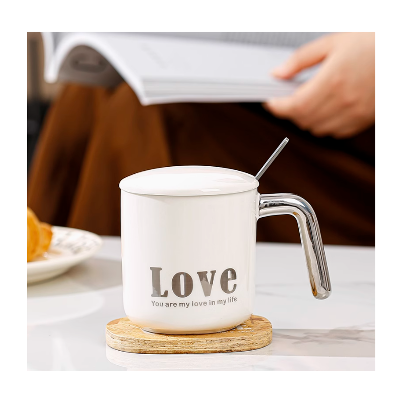 ✅مج بورسلان مع غطاء بورسلان وملعقة بتصميم كتابة Love