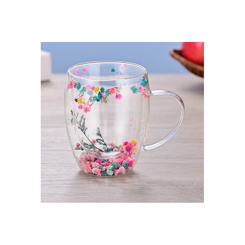 ✅مج دبل كلاس مزدوج الجدران ورد ملون سعة 350 مل