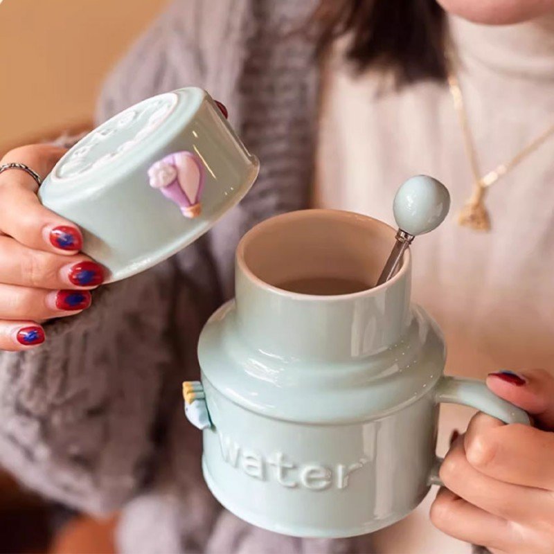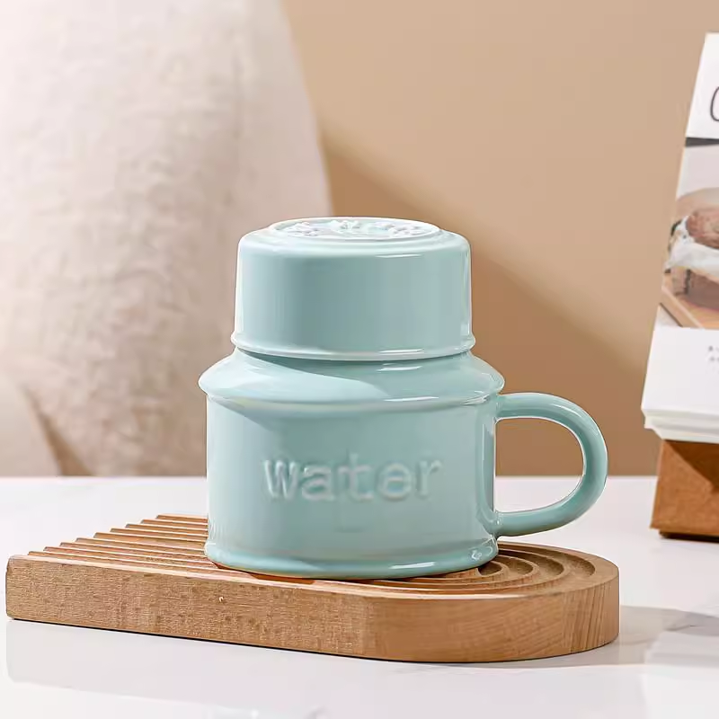 ✅ كوب مع غطاء فيروزي