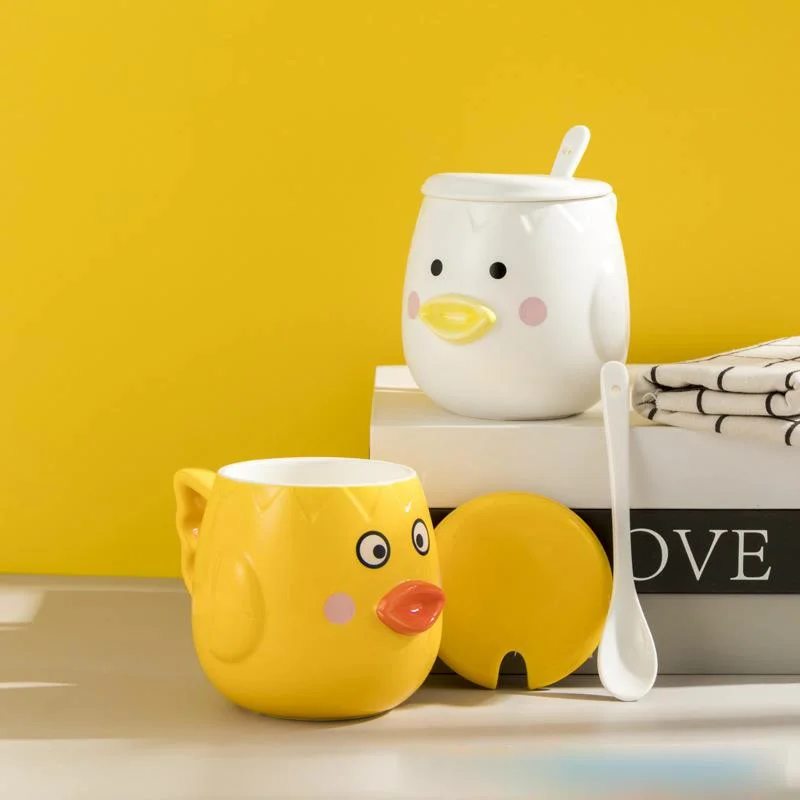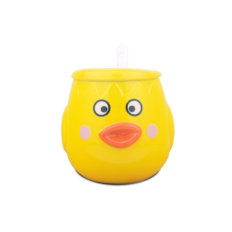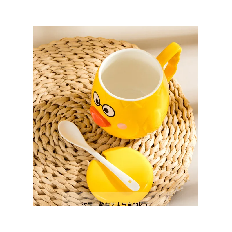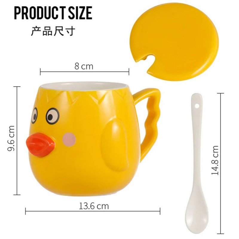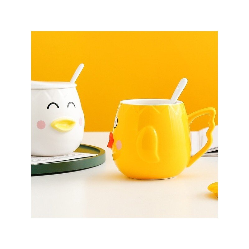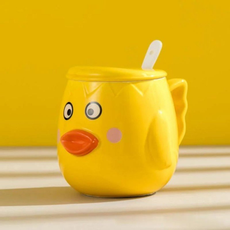 ✅ كوب مع غطاء أصفر وملعقة بيضاء