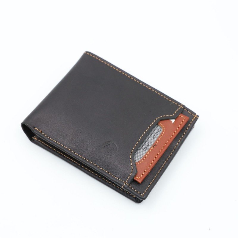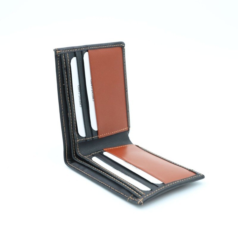 محفظة شخصية جلد للرجال لون أسود وعسلي