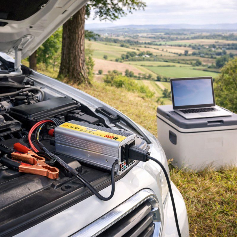 قوة 500 واط: يسمح بتحويل الكهرباء بفعالية لتشغيل الأجهزة الإلكترونية مثل الشواحن، الكمبيوتر المحمول، أو الأدوات الكهربائية الصغيرة.