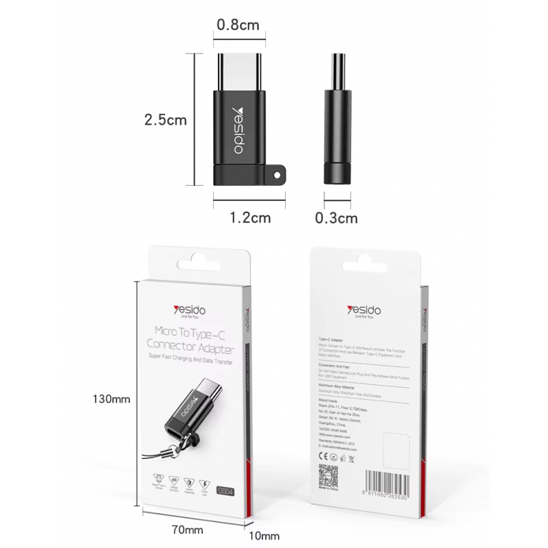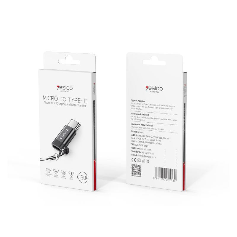 محول Yesido GS04 الذكي يتيح لك تحويل كابل Micro USB إلى Type-C بسهولة تامة، لتتمكن من شحن أجهزتك الحديثة ونقل البيانات بسرعة فائقة. مصنوع من سبائك الألومنيوم عالية الجودة لمتانة تدوم طويلاً ومقاومة للتآكل، مع تصميم صغير الحجم وخفيف الوزن يناسب الاستخدام اليومي والسفر. يدعم الشحن السريع ونقل البيانات بسرعة عالية، ويتميز بآلية توصيل Plug & Play بدون أي إعدادات مسبقة. مثالي للهواتف، الأجهزة اللوحية، وسماعات البلوتوث وغيرها من الأجهزة المزودة بمنفذ Type-C