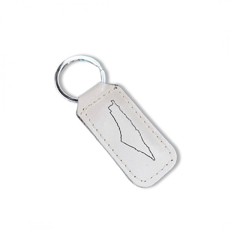 مدالية أنيقة بشكل خارطة فلسطين مصنوعة من الجلد الطبيعي بجودة عالية وتشطيب يدوي متقن.