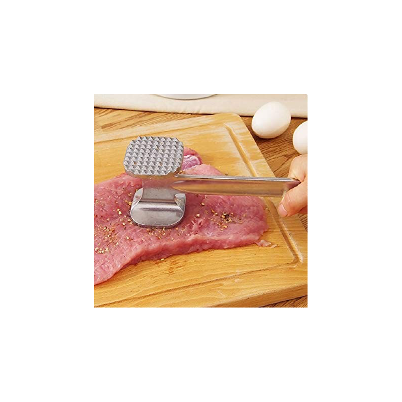 ✅يمكن أن يكون الجانب المسطح عبارة عن مسطح للحوم أو مضرب حتى يمكن استخدامه لسحق الثلج، أو الخضار، أو الثوم، أو المكسرات، أو الحلوى الصلبة الجانب الآخر مع ارتفاع الملمس مفيد للثقب والطرافة، وهو مثالي لإنتاج اللحم وشرائح اللحم النضرة.