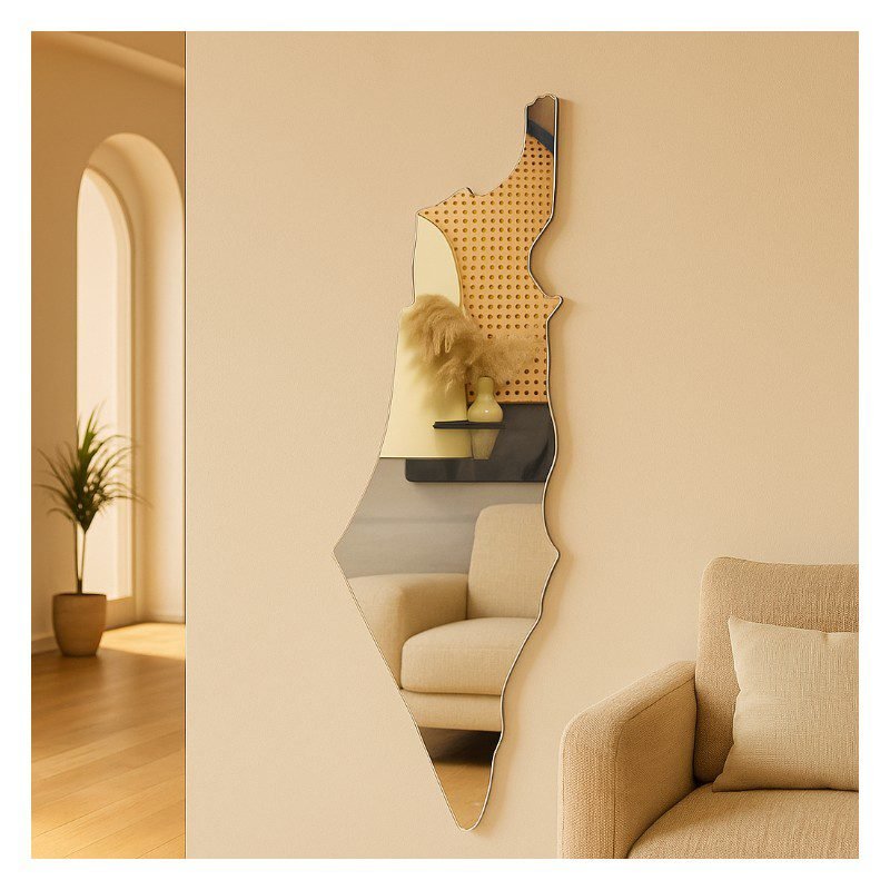 مرآة ديكور بشكل خارطة فلسطين مرآة فاخرة بتصميم مميز يجسد خارطة فلسطين، تجمع بين الأناقة والرمزية لتكون قطعة فنية تعبّر عن الانتماء والذوق الرفيع. مصنوعة بجودة عالية تعكس الضوء بشكل جميل وتمنح المكان لمسة عصرية مميزة. المقاس: 40×120 سم مثالية لتزيين غرف المعيشة، الممرات أو المكاتب، كما تُعد هدية راقية تعبّر عن الهوية والفخر.