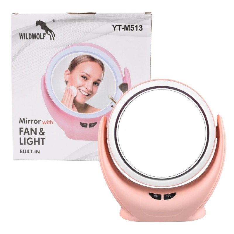 أهم المميزات: • إضاءة LED قابلة للتعديل لتطبيق مكياج دقيق. • مروحة مدمجة لتبريد الوجه أثناء الاستخدام. • تعمل بالشحن والبطاريات لمرونة أكبر. • لون زهري أنيق يناسب جميع الأذواق. • تصميم محمول يناسب الاستخدام اليومي وفي السفر.