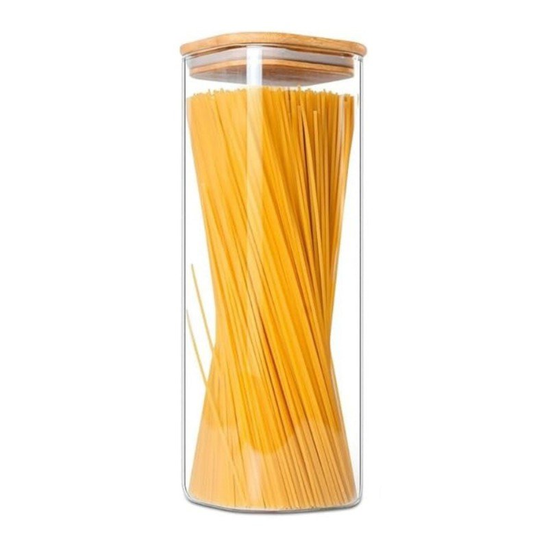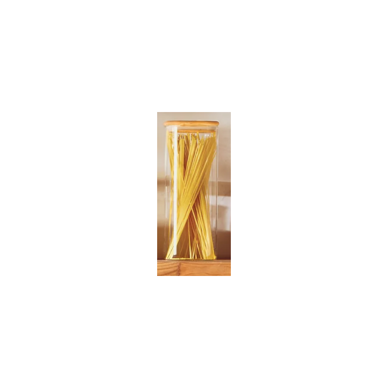 مرتبان زجاج غطاء بامبو قطر 8سم وارتفاع 20.5 سم