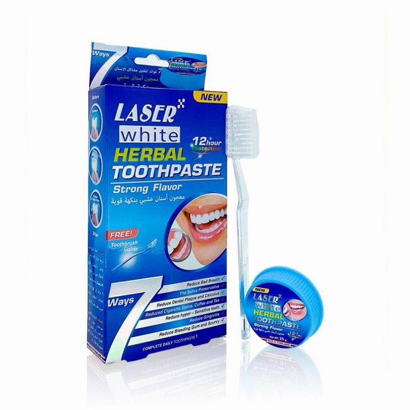 مسحوق أسنان عشبي بنكهة قوية حجم 25 غم – Herbal Toothpaste by Laser White