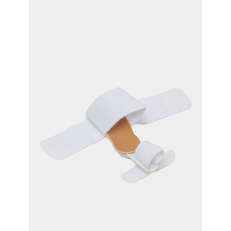 يحتوي على مشد مطاطي ومسند بلاستك مبطن بطبقه اسفنجيه يساعد على تصحيح الابهام بشكل مريح