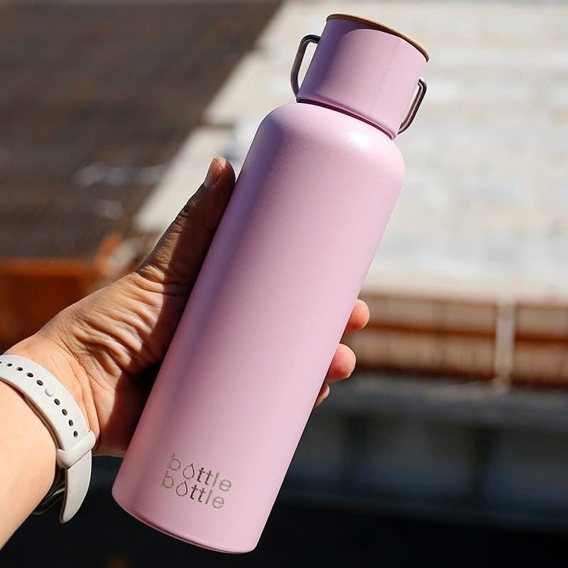 مطرة ماء مصنوعة من الستانلس ستيل عالي الجودة، بتصميم عصري ولون زهري أنيق يناسب الذوق العصري. مزودة بغطاء محكم مع يد جانبية لسهولة الحمل أثناء التنقل، السفر، الرياضة أو الاستخدام اليومي.