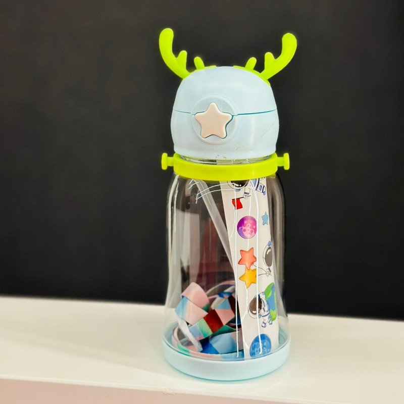 ✅مطرة بلاستيك مع غطاء بتصميم قرون يحتوي على مصاصة .