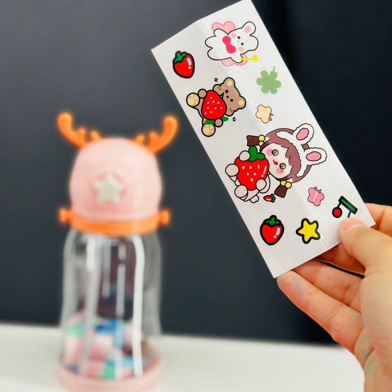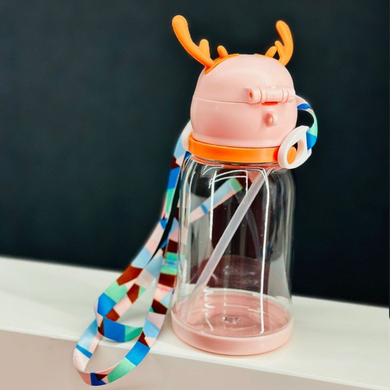 ✅مطرة بلاستيك مع غطاء بتصميم قرون يحتوي على مصاصة .