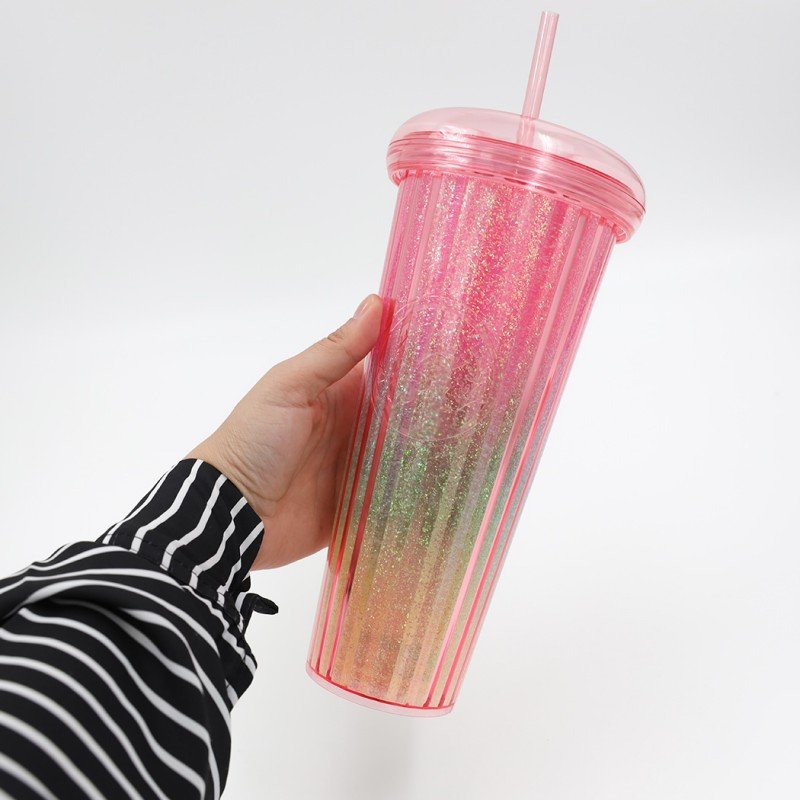 ✅ مطرة ماء بلاستيك بلمعة مع مصاصة.