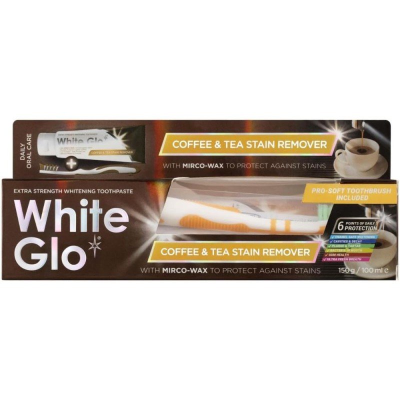 ✅معجون اسنان للتبييض من آثار الشاي والقهوة مع فرشاة أسنان من وايت جلو 150ج