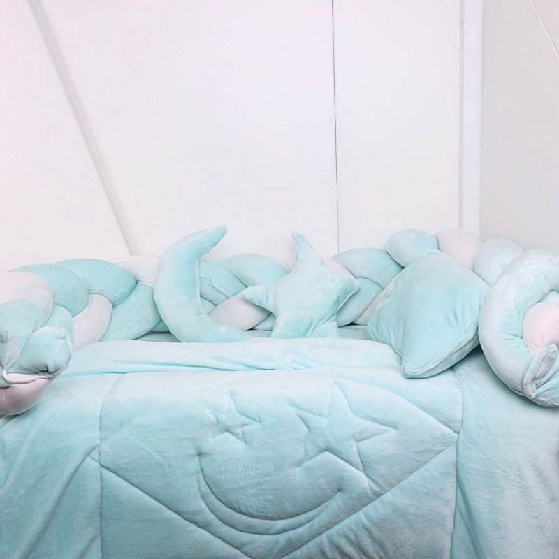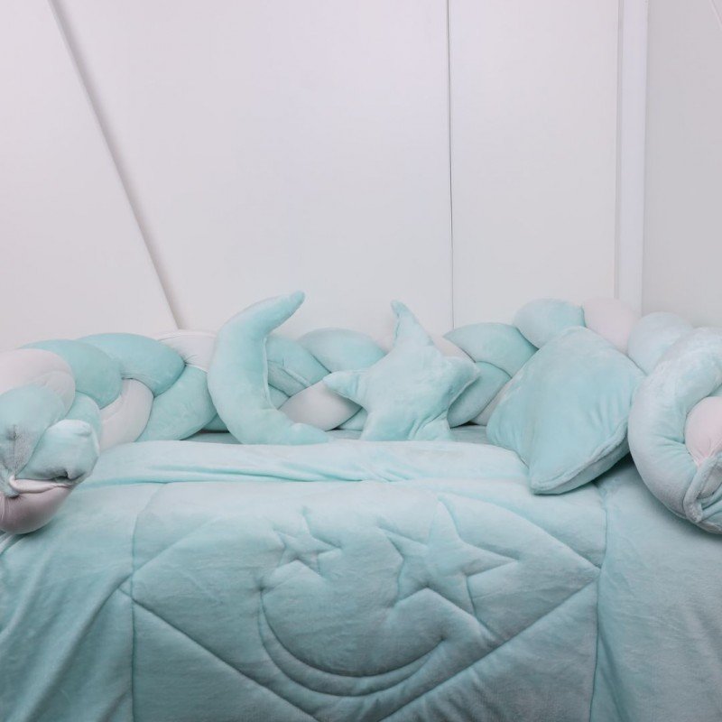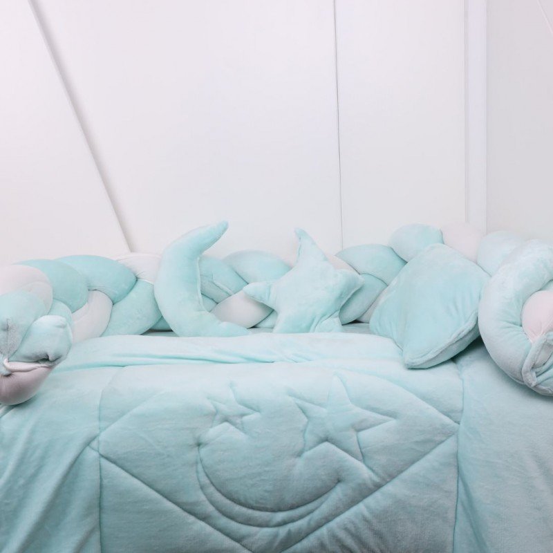 مفرش بيبي جدايل مخمل للأطفال (6 قطع) لون فيروزي فاتح وأبيض