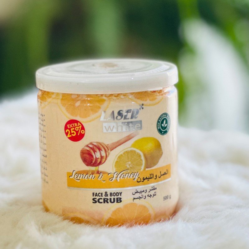 مقشر ومبيض للوجه والجسم بالعسل والليمون حجم 500 غم – Face & Body Scrub with Lemon & Honey by Laser White