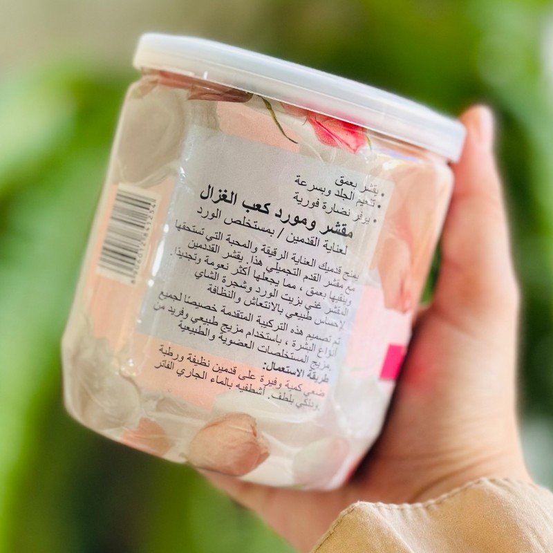 مقشر ومورد كعب الغزال للعناية بالقدمين بمستخلص الورديزيل الأوساخ والدهون.يزيل الرؤوس السوداء.يعمل على تقشير وتنظيف البشرة بطريقة فعالة.تركيبة مميزة لكافة أنواع البشرة.مزيج فريد من مستخلصات عضوية وطبيعية.الحجم 500 غرام.صنع في الهند.