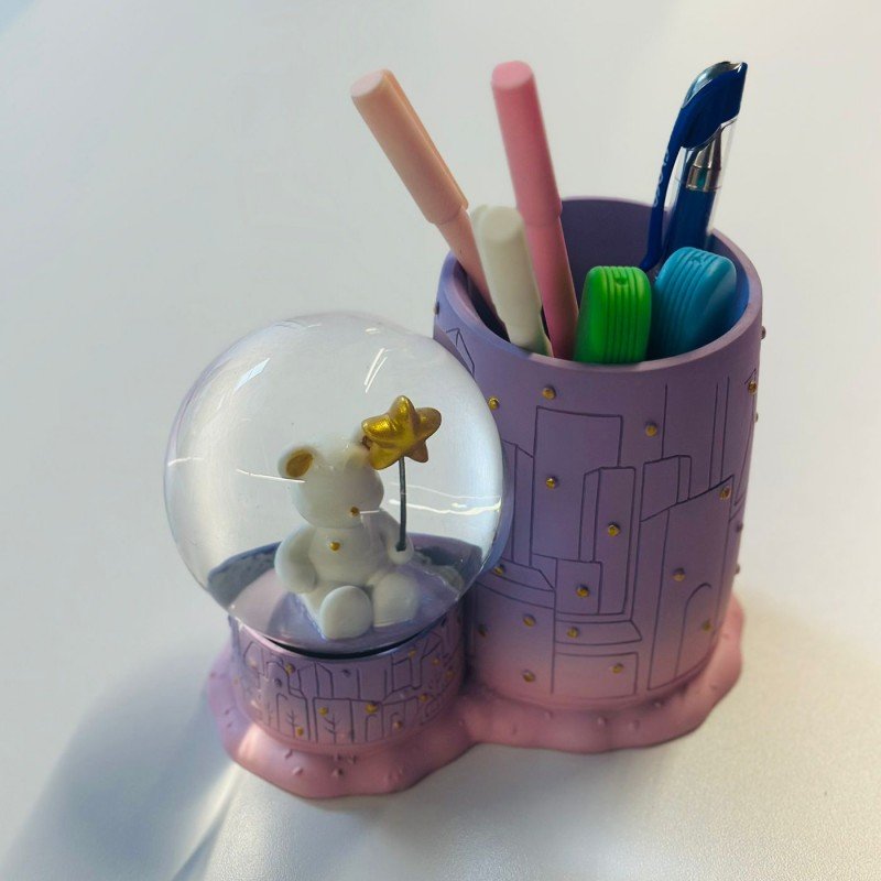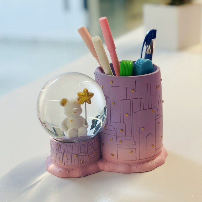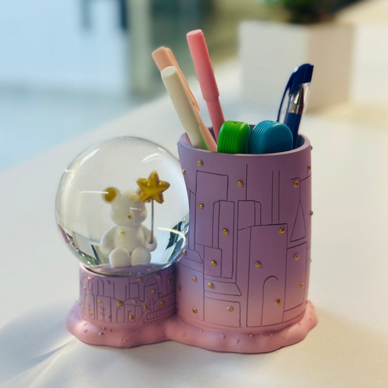 ✅ مقلمة مكتب مع بلورية كرة الثلج المضيئة التي تعمل بالبطارية.