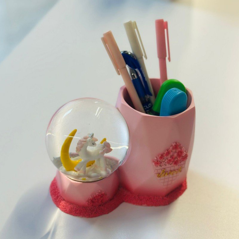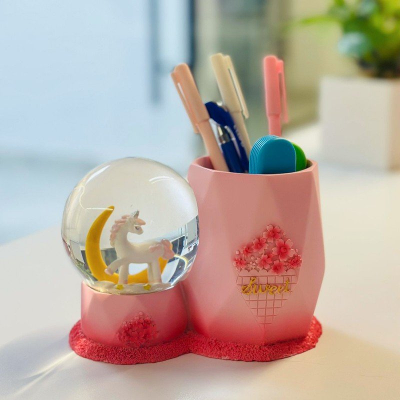 ✅ مقلمة مكتب مع بلورية كرة الثلج المضيئة التي تعمل بالبطارية.