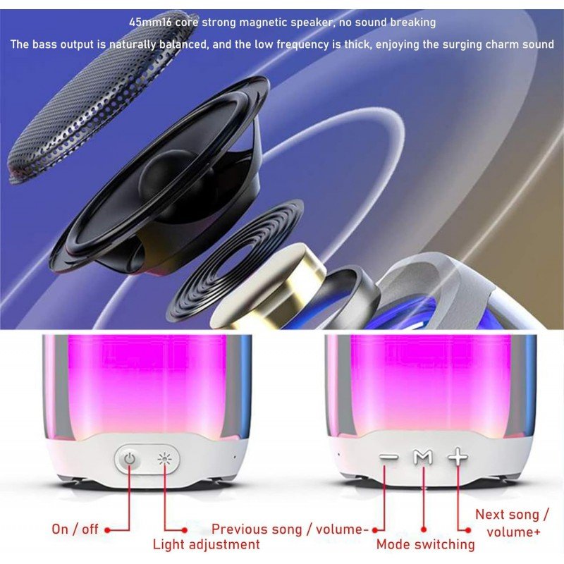✅ مكبرات بلوتوث لا سلكية بإضاءة LED RGB المميز مع 11 وضع إضاءة وصوت ستيريو وبطاقة TF✅ الفئة المستهدفة: لمحبي الموسيقى والتكنولوجيا الذين يبحثون عن مكبر صوت عالي الجودة مع ميزات إضافية مثل الإضاءة والتوافق مع البلوتوث✅ التصميم: مكبر صوت مدمج مع إضاءة LED RGB قابلة للتخصيص، يتيح لك تغيير الألوان والتأثيرات لتتناسب مع الأجواء، مع صوت ستيريو عالي الجودة✅ اللون: مع إضاءة RGB المتغيرة، مما يضيف لمسة جمالية وعصرية لأي مكان✅ المميزات: