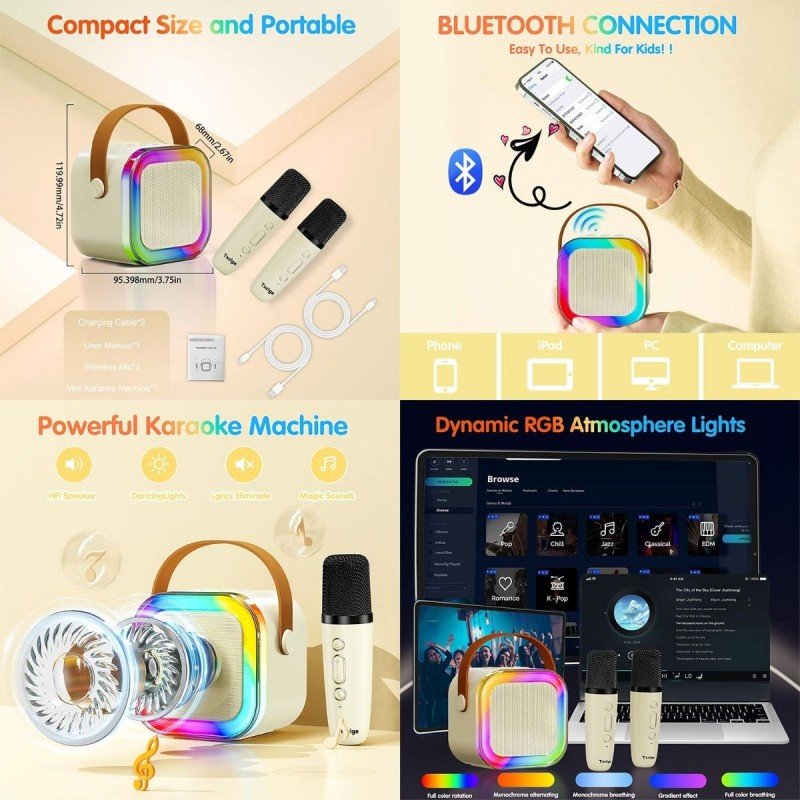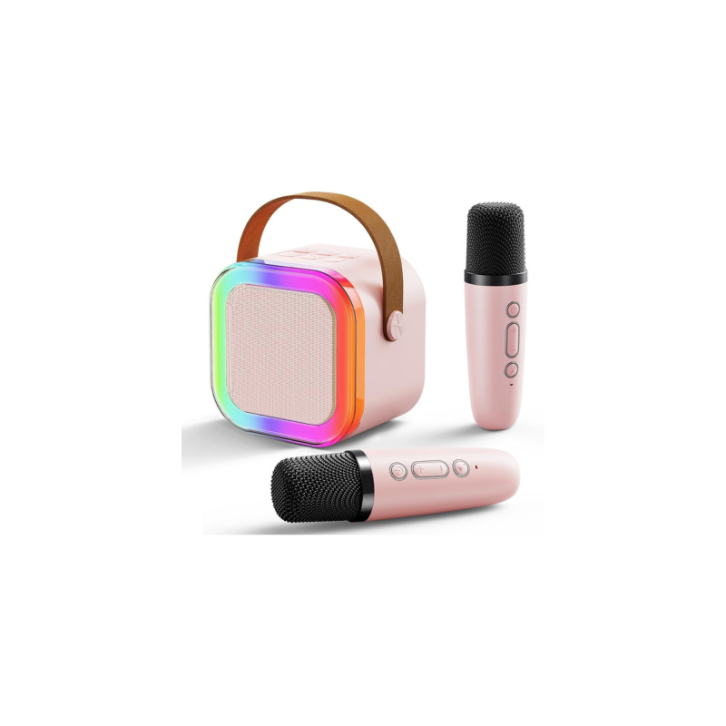 مكبر صوت K12 صغير الحجم مزود بميكروفونين لاسلكيين – ذات تأثيرات صوتية احترافية مع إضاءة RGB