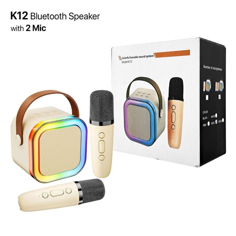 Be the first to review “مكبر صوت K12 صغير الحجم مزود بميكروفونين لاسلكيين – ذات تأثيرات صوتية احترافية مع إضاءة RGB”