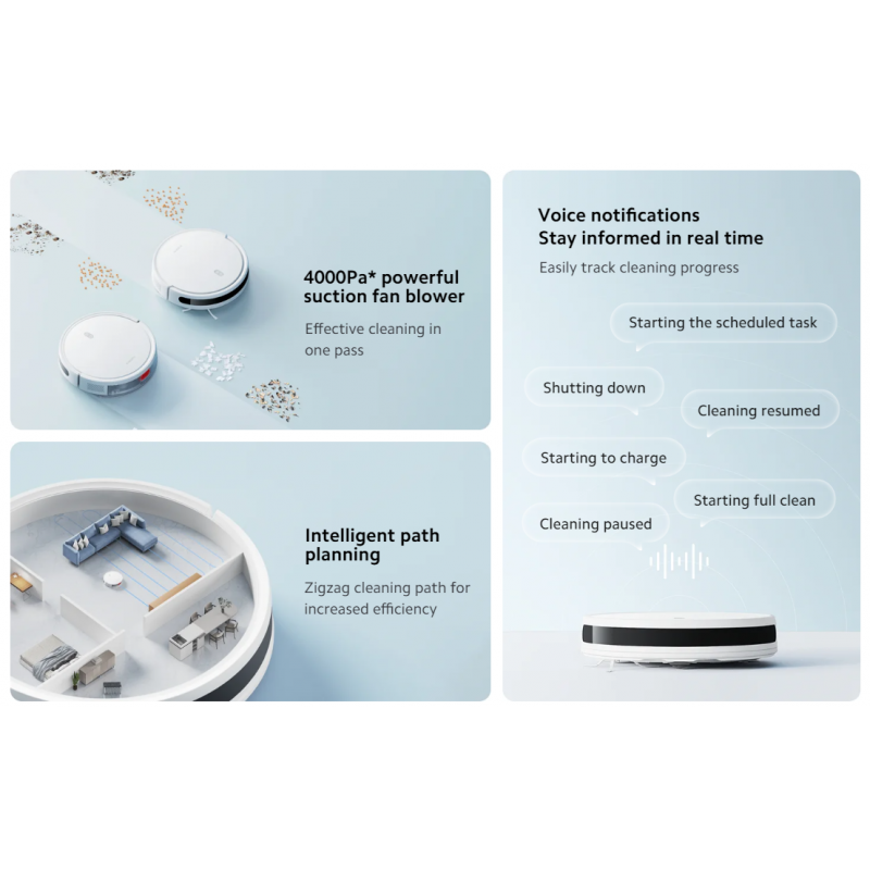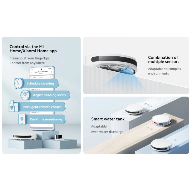 ✅ تم تجهيز مكنسة Xiaomi E10 EU بتقنيات ذكية تتيح لها تحديد المناطق التي تحتاج إلى تنظيف وتجنب العقبات، مما يضمن عدم ترك أي جزء من المنزل دون تنظيف. بالإضافة إلى ذلك، تأتي هذه المكنسة بقدرات تنظيف متعددة تشمل الكنس والمسح، مما يجعلها الخيار الأمثل للحفاظ على نظافة منزلك دون الحاجة إلى التدخل اليدوي