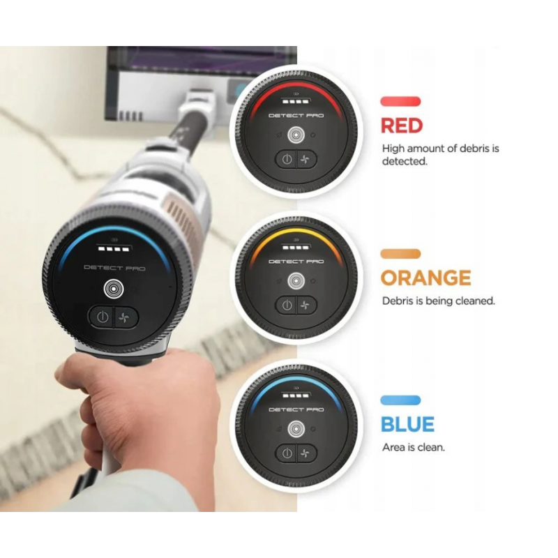 LightDetect: Responds to low-light areas, automatically illuminating hidden dust and debris.