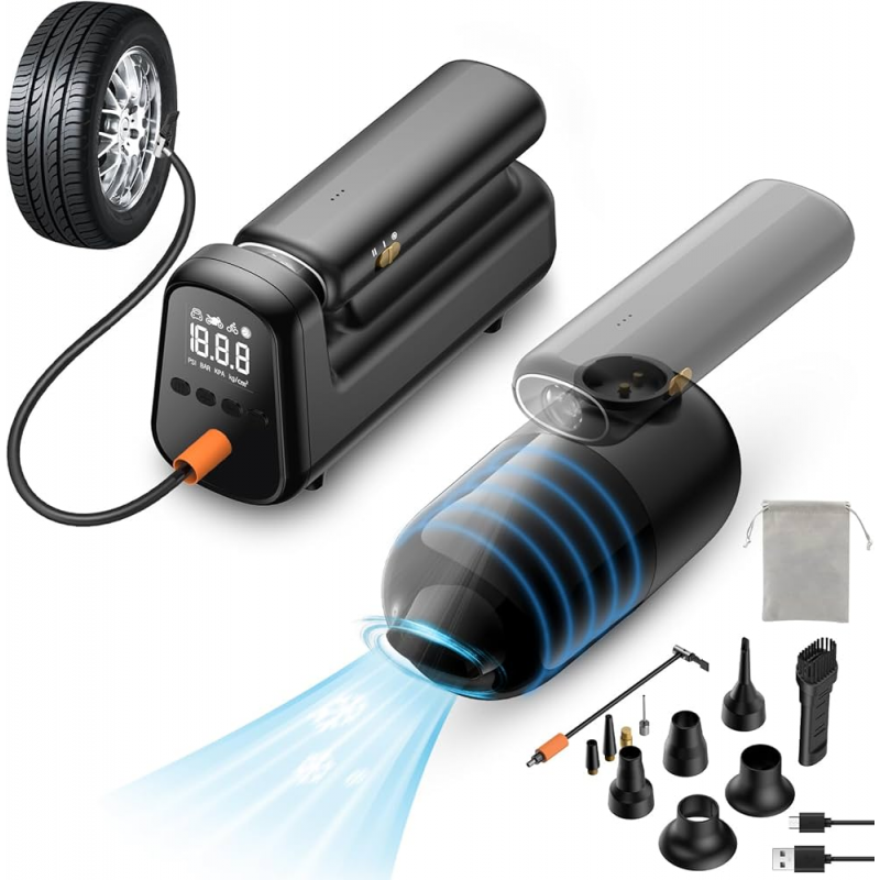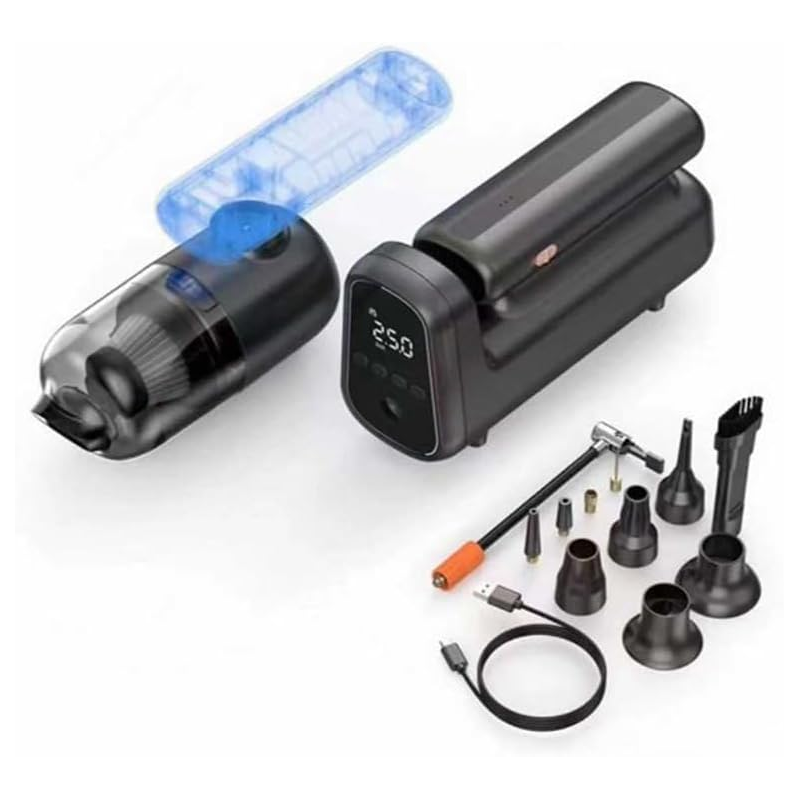 منفاخ الكتروني للسيارة ومكنسه كهرباء وبور بانك للجوال وكشاف
