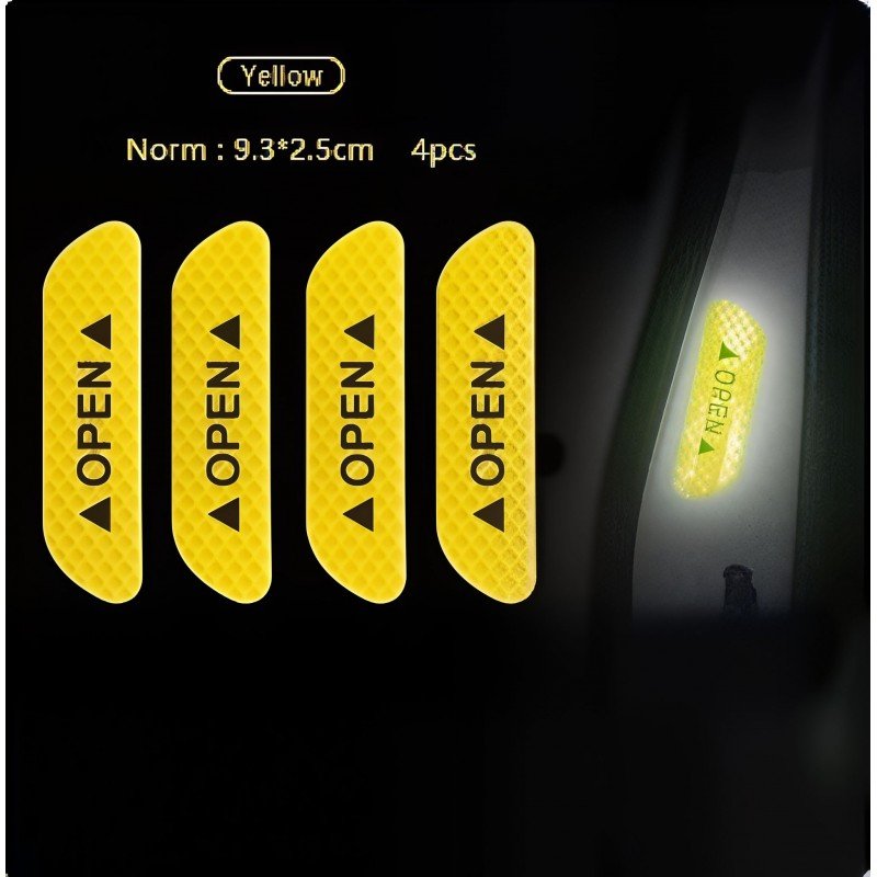 ملصقات عواكس تحذيرية لابواب السيارة عند فتحها بألون مختلفة عدد 4 قطع لون أصفر مقاس 14*2 سم