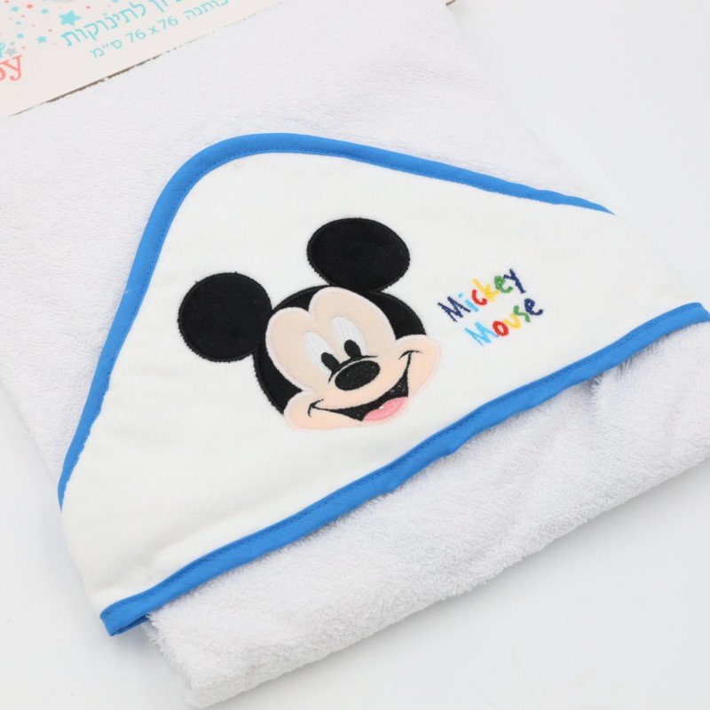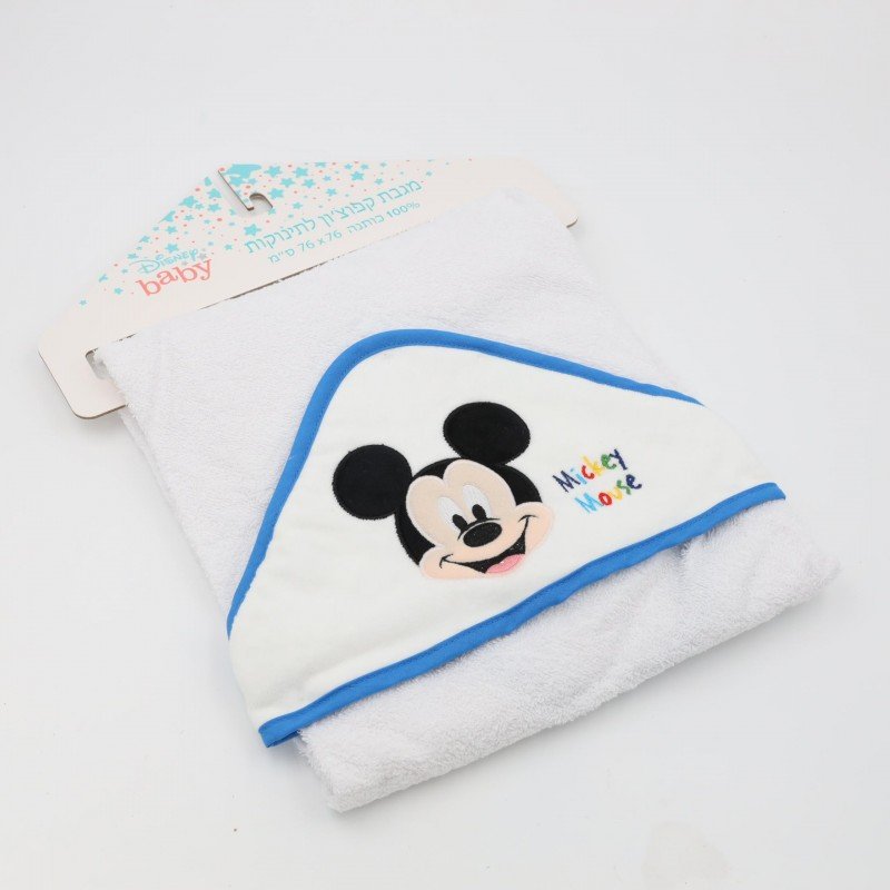 منشفة للإستحمام للأطفال لون أبيض مع غطاء للشعر لون أزرق