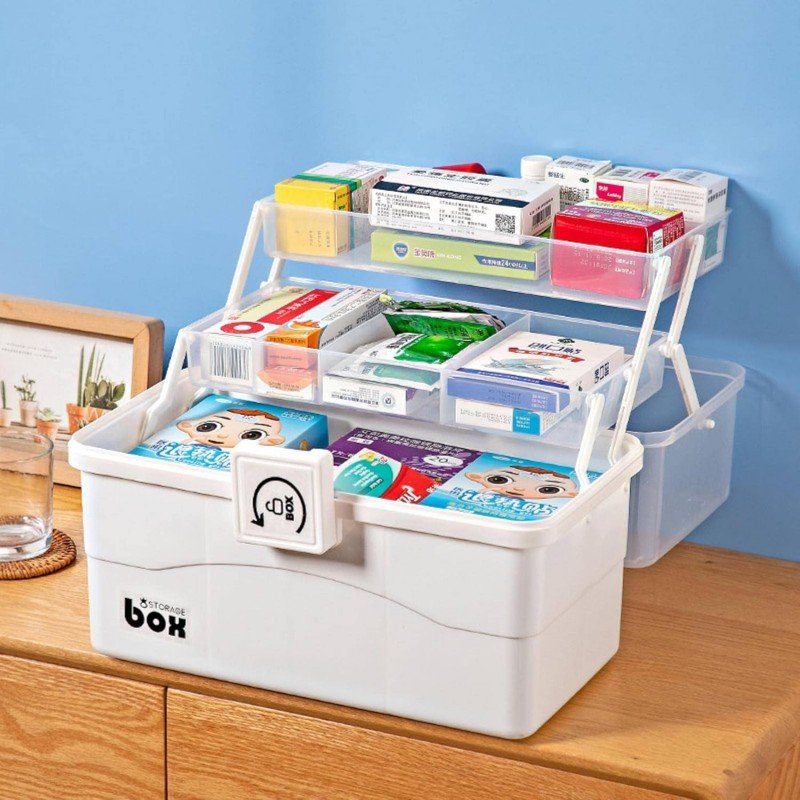 صندوق حامل للادوية بأحجام مختلفو وألوان تناسب جميع الأذواق، مزود بغطاء يفتح لغاية 180 درجة مع رفوف اضافية بالداخل، تحمل كمية كبيرة من الادوية والعقاقير الطبية، كما يمكن استخدامها لأغراض اخرى، سهلة الحمل وتوفر المساحة