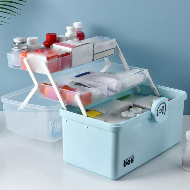 صندوق حامل للادوية بأحجام مختلفو وألوان تناسب جميع الأذواق، مزود بغطاء يفتح لغاية 180 درجة مع رفوف اضافية بالداخل، تحمل كمية كبيرة من الادوية والعقاقير الطبية، كما يمكن استخدامها لأغراض اخرى، سهلة الحمل وتوفر المساحة