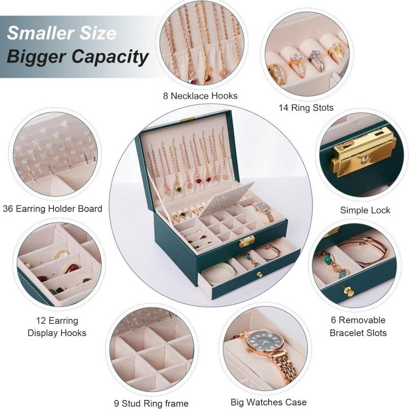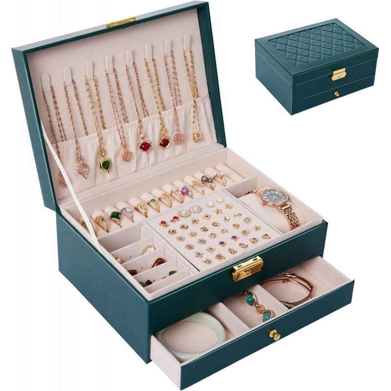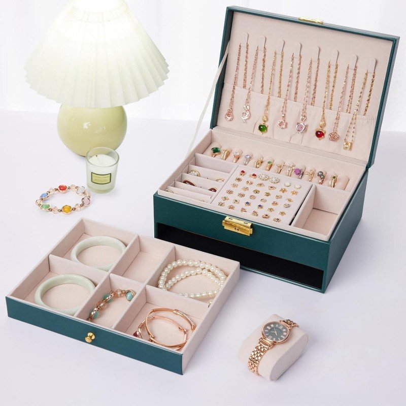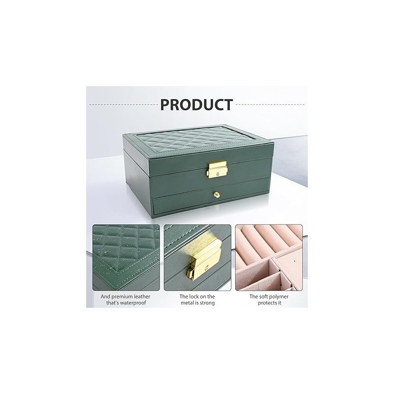 منظم اكسسوارات جلد، مزود بقفل محكم الاغلاق وجرار اضافي لتنظيم الاكسسوارات