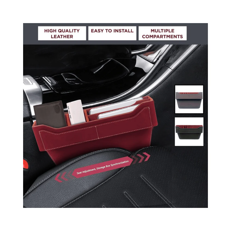 ✅ جلد عالي الجودة لمظهر فخم ومتانة طويلة الأمد ✅ سهل التركيب بدون أدوات ✅ عدة أقسام لتنظيم الأدوات بشكل عملي ✅ يتماشى مع حركة المقعد بفضل التصميم الذكي ✅ يمنع سقوط الأغراض في الفجوة الجانبية