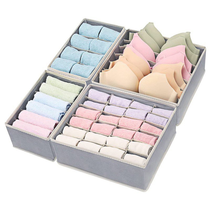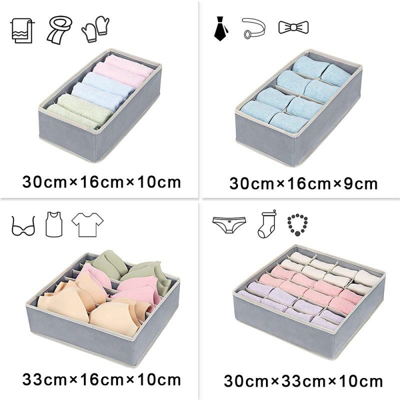 احصل على ترتيب مثالي لأدراج غرفة النوم أو أدراج الخزانة مع طقم منظمات الجوارير القماشي المكوّن من 4 قطع متنوعة، مصممة خصيصًا لترتيب الملابس الداخلية والجوارب والإكسسوارات والقمصان بطريقة عملية وأنيقة.
