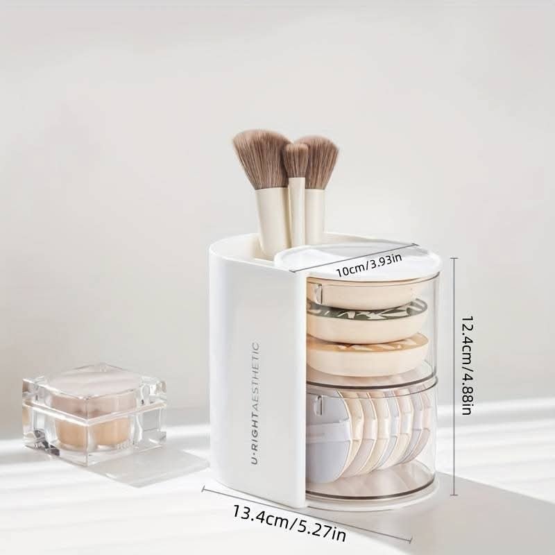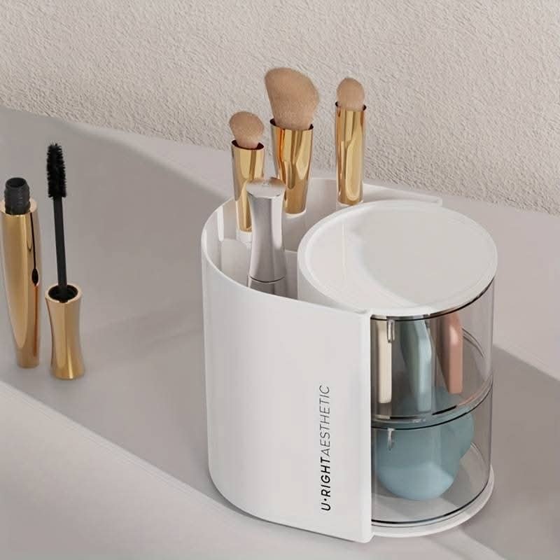 منظم مكياج دوار لون ابيض طبقتين