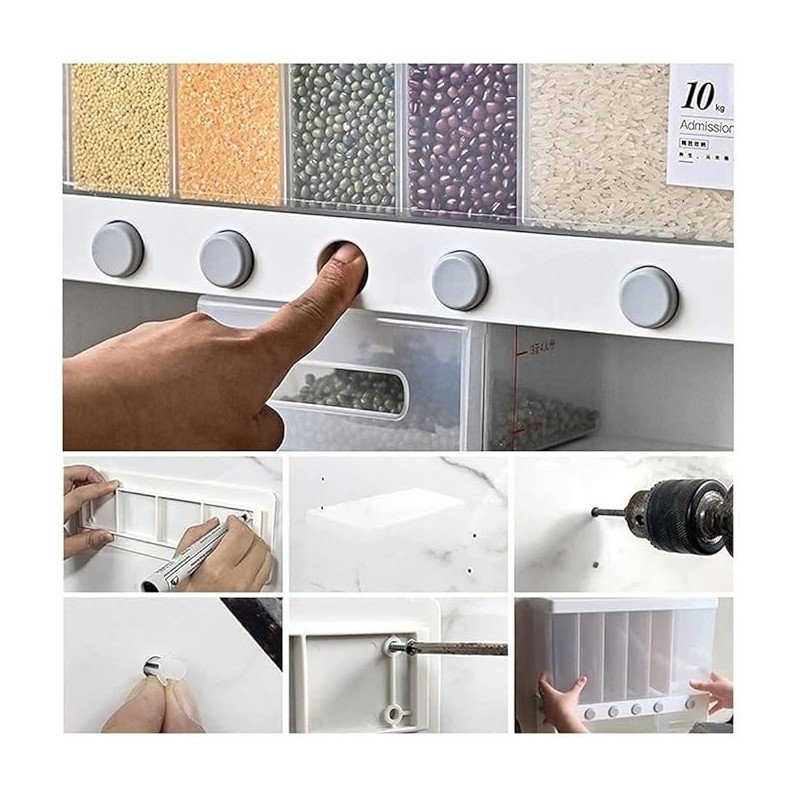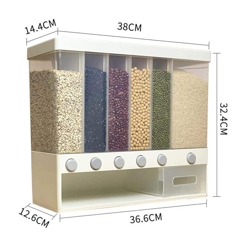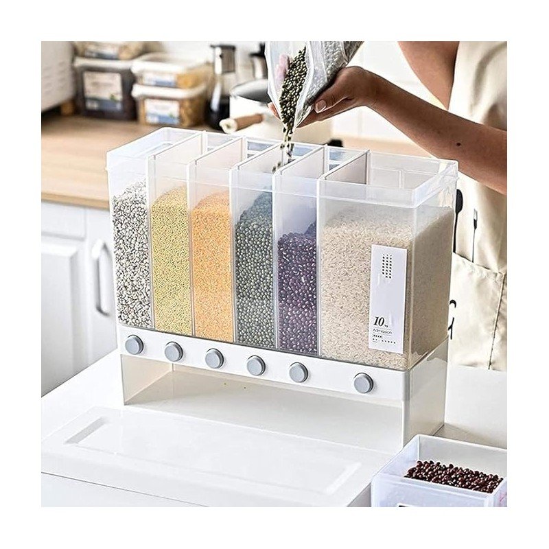 سعة كبيرة تكفي لتخزين حتى 10 كيلوغرام من الأرز، القمح، الفول أو غيرها من الحبوب. تصميم محكم الغلق يحافظ على الطعام طازجاً ويحميه من الرطوبة والحشرات. نافذة شفافة لمتابعة الكمية المتبقية بسهولة. مصنوع من بلاستيك متين وقابل للتنظيف بسهولة. مزود بفتحة مريحة لتفريغ أو أخذ الحبوب. تصميم موفّر للمساحة ومثالي للمطبخ.