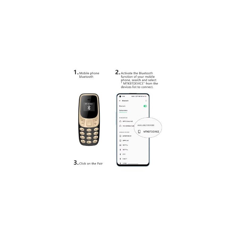 تفاصيل المنتج: ✅ وحدة المعالجة المركزية: MTK6261 ✅ رام: 32 ميغابايت ✅ ذاكرة: 32 ميجا بايت ✅ الذاكرة الخارجية: أقصى سعة 16 جيجابايت ✅ نوع الشبكة: GSM ✅ بلوتوث : إصدار 3.0 ✅ حجم الشاشة: بوصة ✅ فتحة بطاقة SIM: شريحة SIM مزدوجة ، استعداد مزدوج (2 نانو بطاقة SIM) ✅ فتحة بطاقة TF: نعم ✅ فتحة USB الصغيرة: نعم ✅ ميزات إضافية: ، Bluetoth ، والمنبه ✅ حجم المنتج: 68 × 28 × 12 مم ✅ حجم العبوة: x 91×30 مم اللغة: يدعم هذه اللغات : الإنجليزية, الفرنسية, الإسبانية, الدانمركية, البولندية, البرتغالية, الإيطالية, الألمانية, الملايو, الإندونيسية, الهولندية, الفيتنامية, التركية, الروسية, البلغارية, العربية, الفارسية, العبرية, التايلاندية, اليونانية, السويد, كرواتيا الملحقات: بطارية 1 × 1 × كابل USB 1 × دليل المستخدم 1 × ميدالية خيط ( لون أسود كهدية)