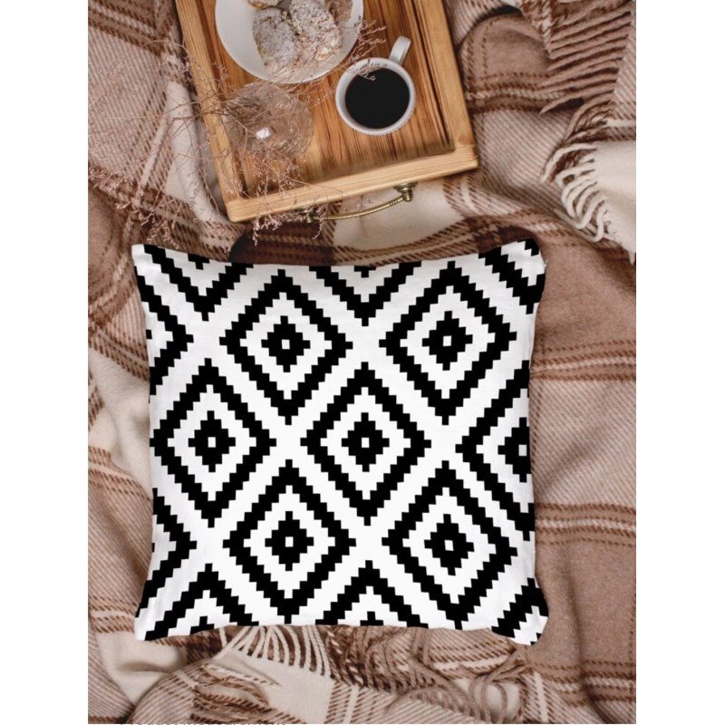 ✅وجه مخده كورنر نقشة اسود وأبيض.