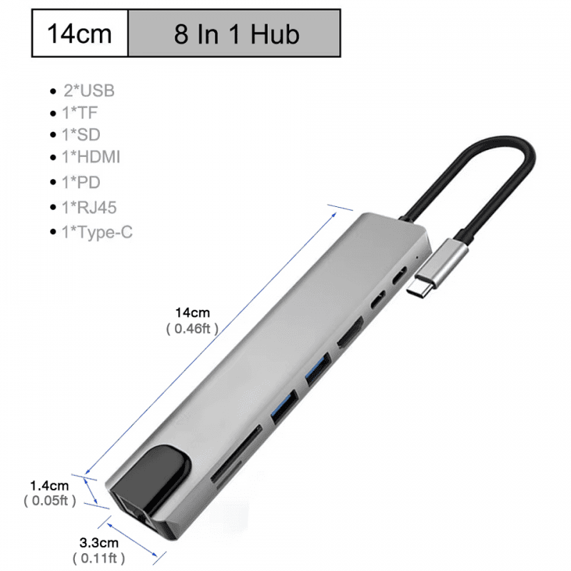 ? وصلة تحويل متعددة المخارج 8 في 1 – Type-C HUB