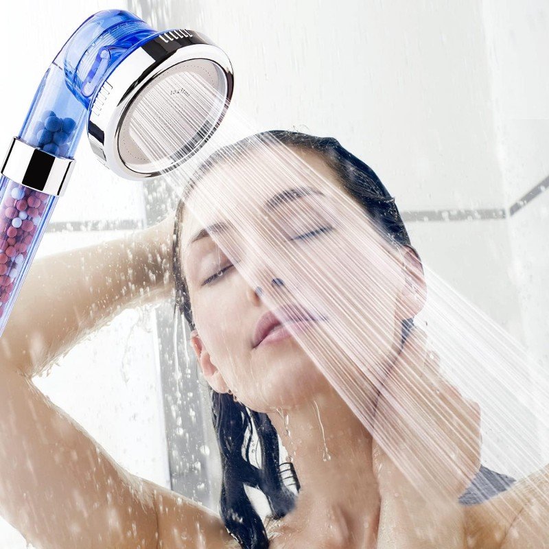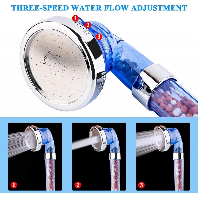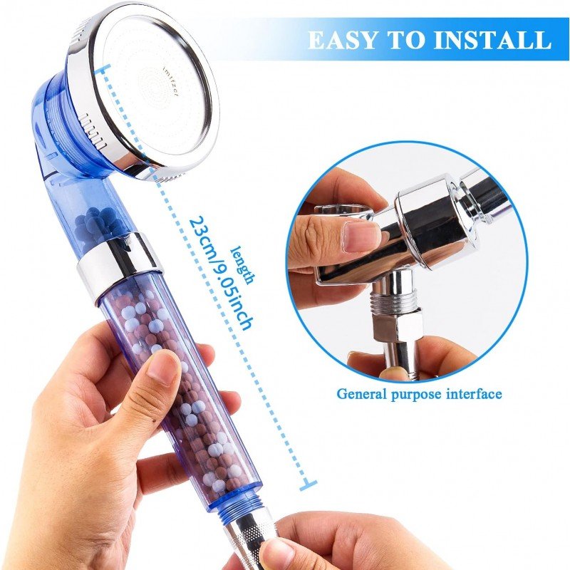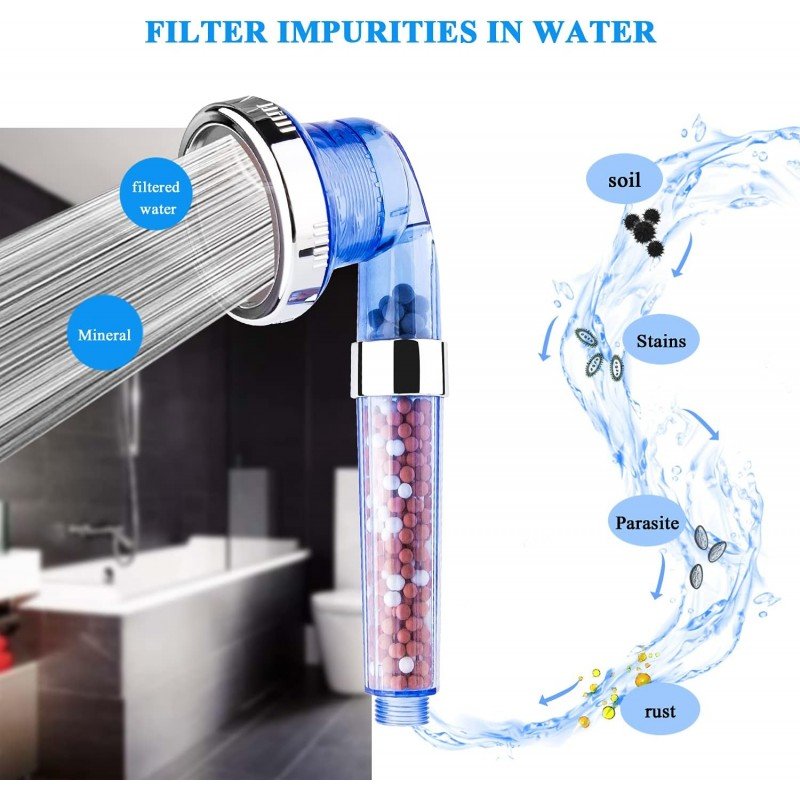 رأس دش عالي الضغط ، رأس دش محمول بفلتر خرز من الحجر مع بخاخ 3 أوضاع ، دش معدني موفر للمياه للشعر الجاف ومنتجع صحي للبشرة