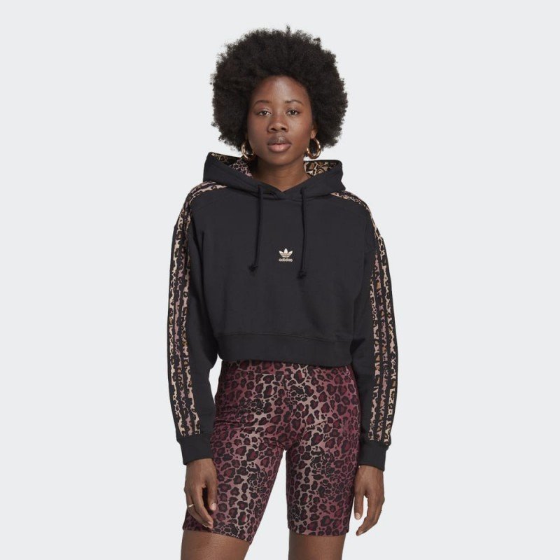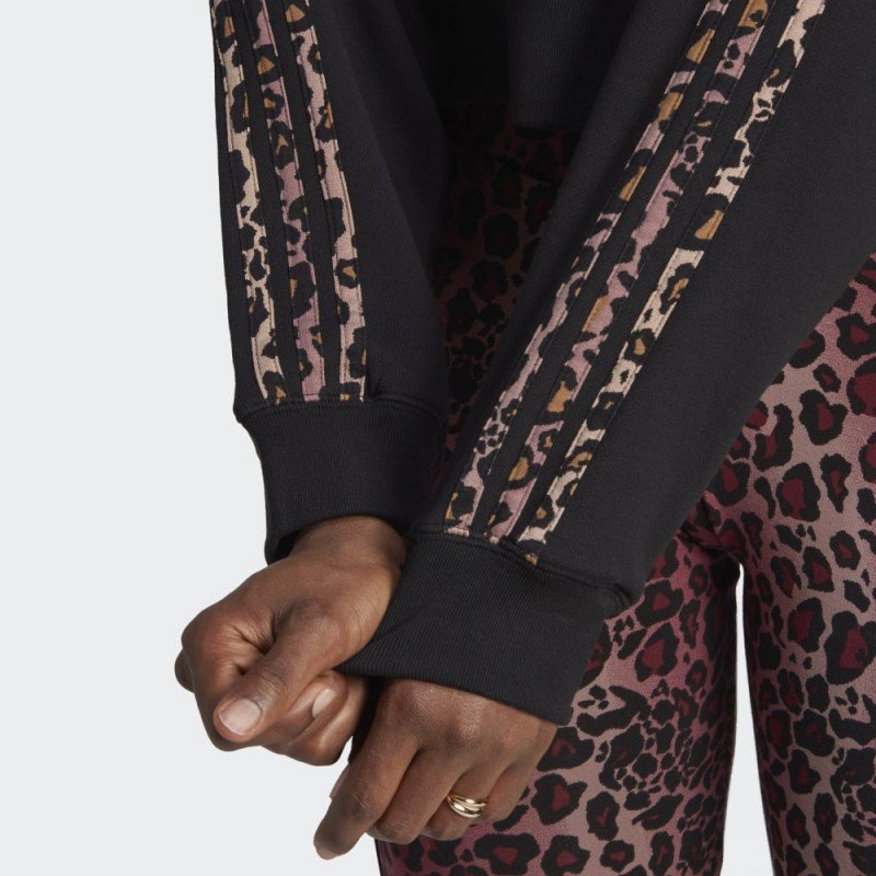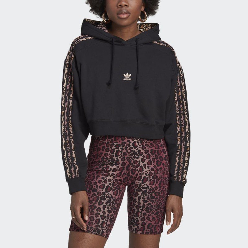 Keep it simple yet chic. This adidas hoodie helps you stand out in the best way possible with an elevated design. Leopard print peeks out on the hood lining and takes over the 3-Stripes down the sleeves. Pair it with anything in your closet to add fun flair. Our cotton products support more sustainable cotton farming.