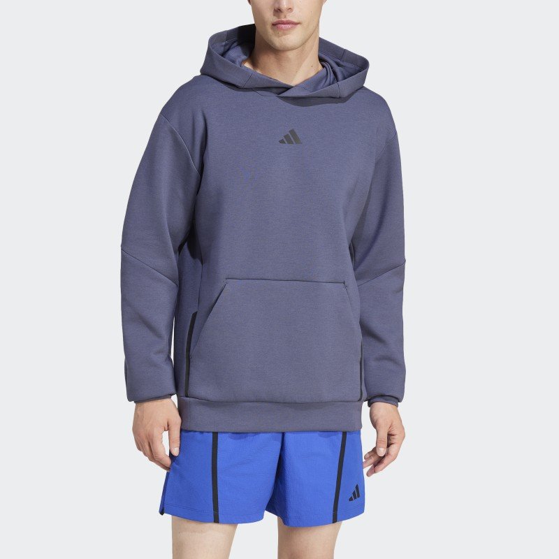 Train in style with this adidas pullover hoodie. Built for maximum movement, this hooded performance sweatshirt keeps you dry through your most intense workouts, thanks to AEROREADY. Subtle branding roots your look in sport. By choosing recycled, we are able to reuse materials that have already been created, which helps to reduce waste. Renewable materials choices will help us to remove our reliance on finite resources. Our products made with a blend of recycled and renewable materials feature at least 70% total of these materials.