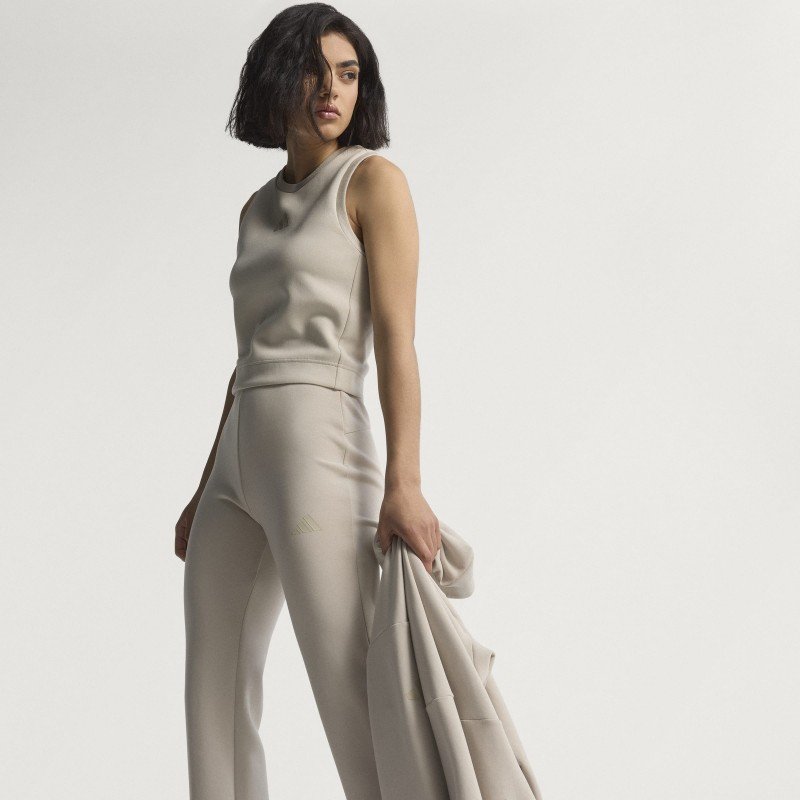 These flared adidas pants are your go-to for laid-back luxury. The soft, peached fabric keeps you comfortable as you move from place to place, while the slim fit, mid-rise waist and flared hems create a flattering silhouette. Inner elastic provides the perfect fit and side slits add a stylish touch